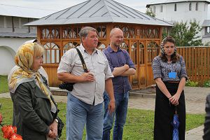 Самая дальней и длительной экскурсией стала автобусная поездка в усадьбу Свиньиных-Козловских (с. Смоленское). Комфортабельный автобус привез ученых в этот замечательный уголок Залесья, где чудом сохранились бывшая дворянская усадьба Свиньиных-Козловских и старый графский парк, который сам по себе является памятником ландшафтной архитектуры конца XVIII века. И то и другое по мере сил и возможностей старательно берегут педагоги и ученики Смоленской школы, которая размещается в здании усадьбы. По мнению ученых, именно это обстоятельство позволило хоть как-то сохранить этот уникальный памятник старины. Сколько подобных усадеб было до основания разрушено после Октябрьской революции! Сколько бесценных усадебных парков было безжалостно вырублено восставшим пролетариатом… Осмотрев школьный музей, посвященный истории дворянской усадьбы Свиньиных-Козловских, и прогулявшись вместе с коллегами по остаткам графского парка, профессор Елена Голосова сделала вывод, что садово-парковый комплекс находится здесь примерно в таком же состоянии, что и десятки чудом сохранившихся усадеб в средней полосе России. Сюда бы вложить средства, а за грамотными ландшафтными специалистами в нашей стране дело не станет. Может быть, посещение Смоленского столь авторитетной научной делегацией сдвинет дело с мертвой точки? Хотелось бы верить!
